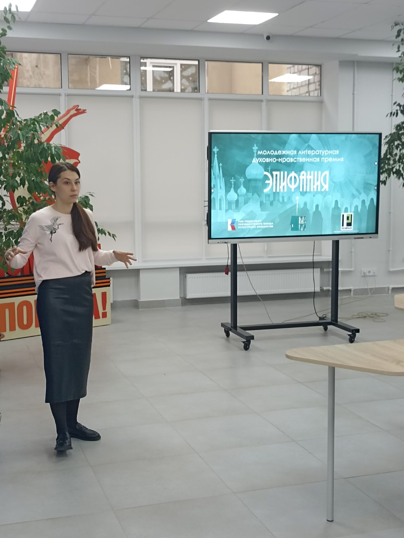 Анна Путило, доцент кафедры литературы и методики её преподавания ВГСПУ, председатель комитета Молодёжного парламента Волгоградской области по образованию, науке и культуре, выступила с приветственным словом, раскрывая цели и задачи конкурса, подробно остановившись на символическом значении названия премии — «Эпифания», обозначающем особое просветление сознания, постижение истины и красоты искусства.