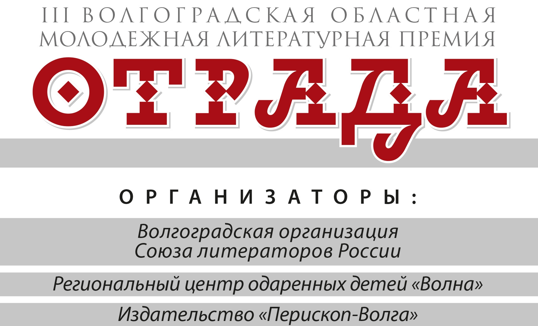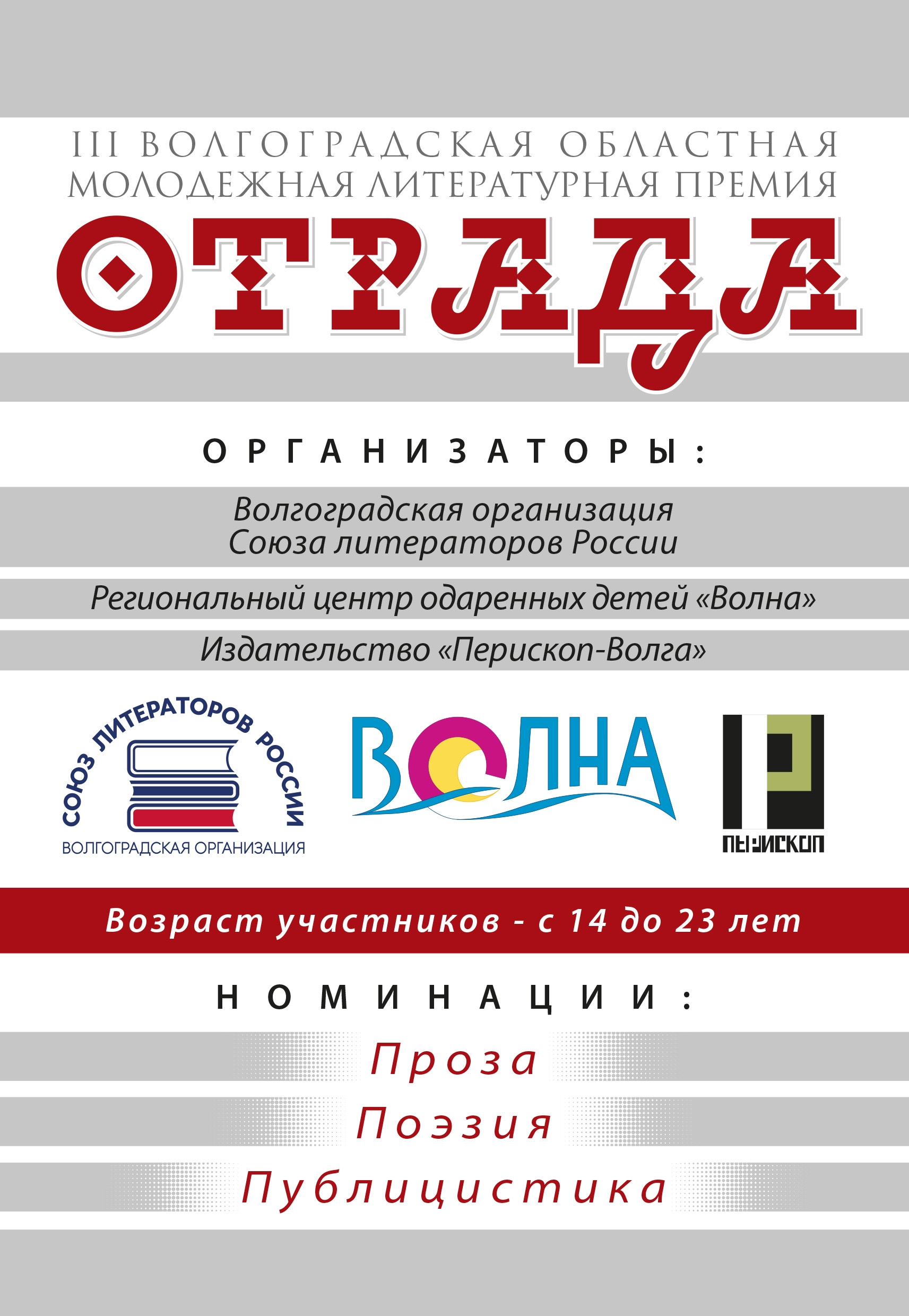 Заявки на участие в текущем сезоне Волгоградской областной молодежной литературной премии «Отрада» принимаются до 20 марта 2026 года на электронную почту m-periscope@yandex.ru с пометкой «ОТРАДА».